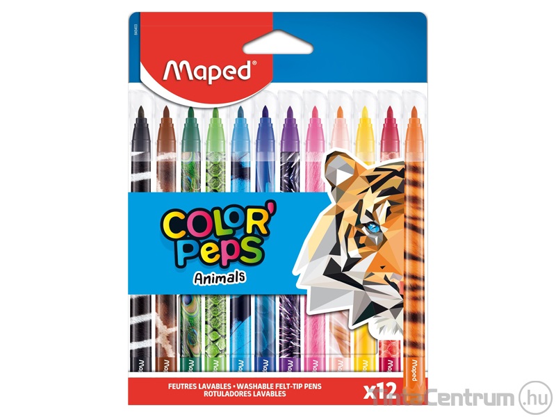 Filctoll készlet, 2,8mm, kimosható, MAPED "Color’Peps Animals", 12 különböző szín Filctoll készlet, 2,8mm, kimosható, MAPED "Color’Peps Animals", 12 különböző szín