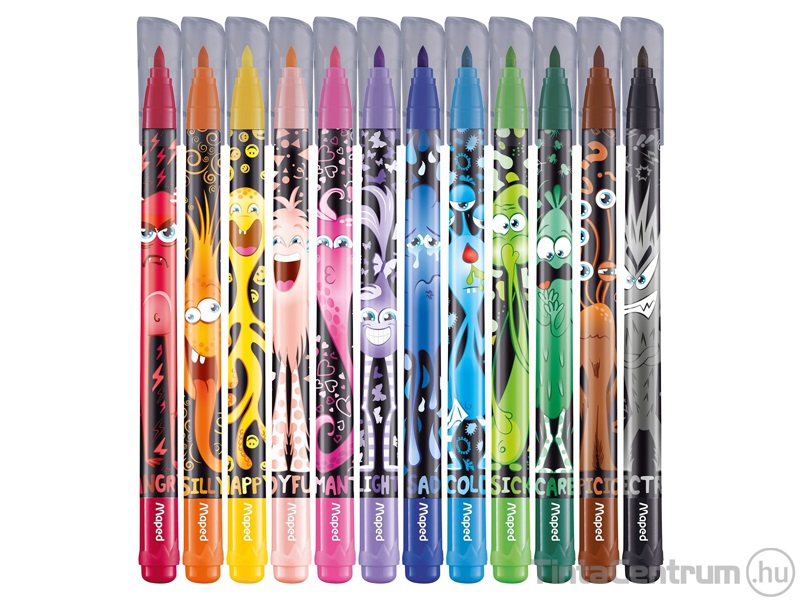 Filctoll készlet, 2,8mm, kimosható, MAPED "Color`Peps Monster", 12 különböző szín Filctoll készlet, 2,8mm, kimosható, MAPED "Color`Peps Monster", 12 különböző szín
