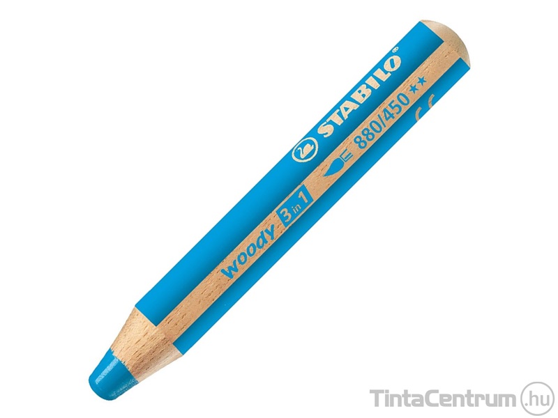 Színes ceruza, vastag, STABILO "Woody 3 in 1", ciánkék